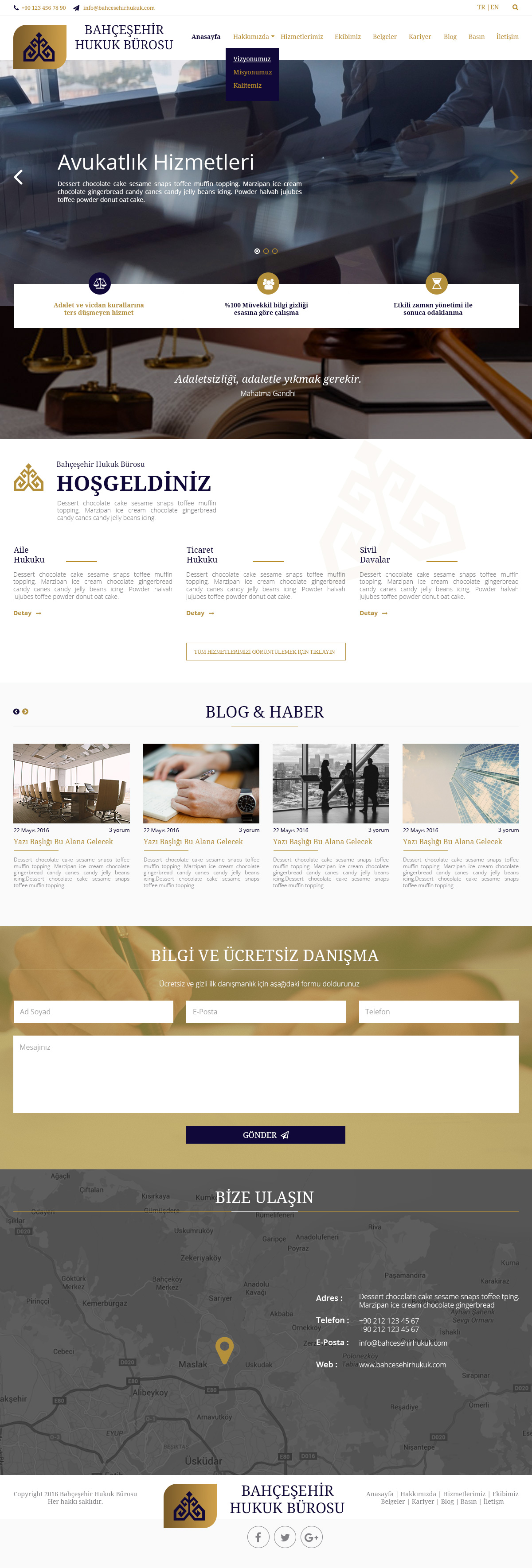 İstanbul'da faaliyet gösteren Bahçeşehir Hukuk Bürosu için hazırladığımız özel arayüz,responsive kodlama ve wp entegrasyon hizmeti.